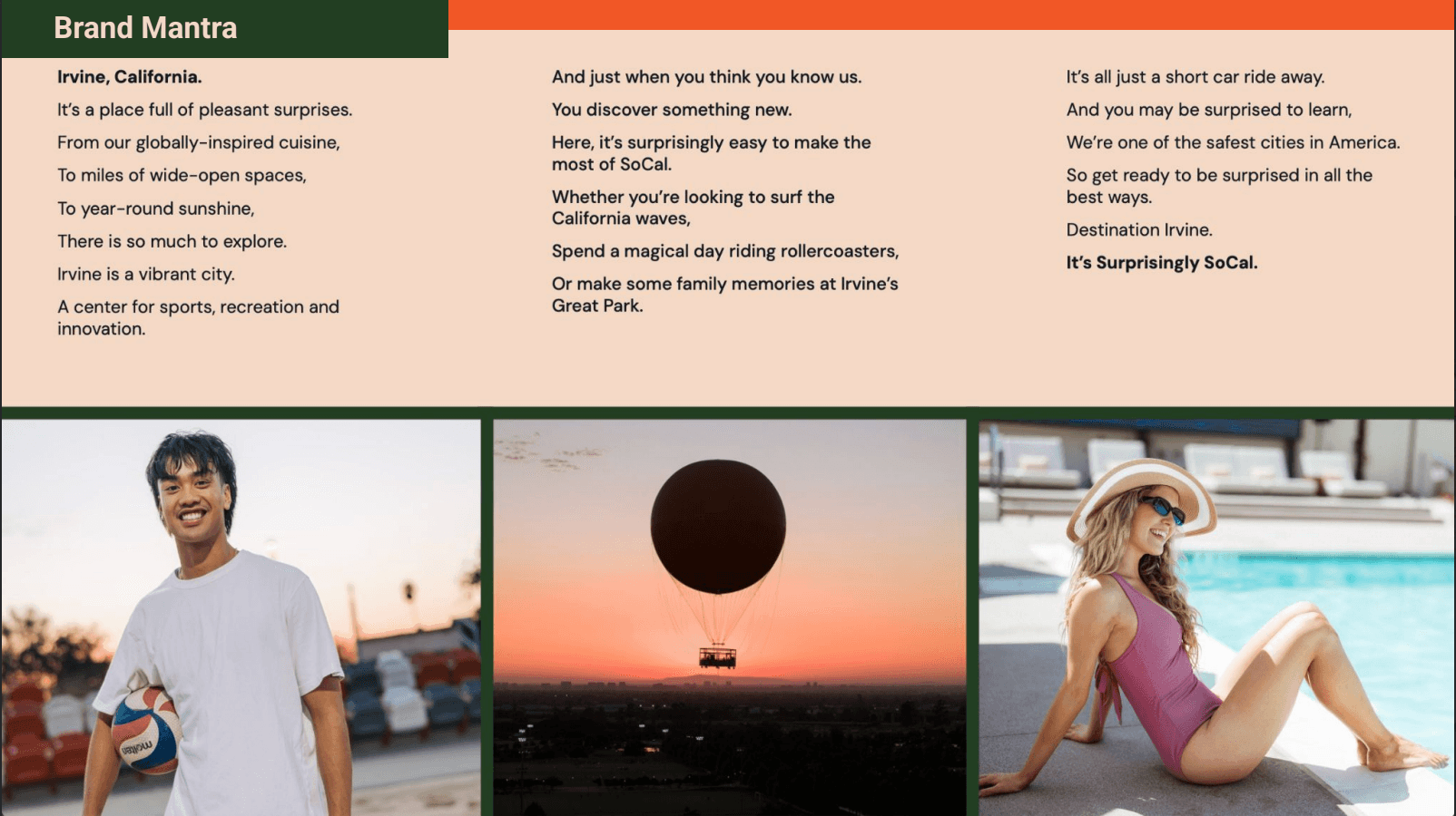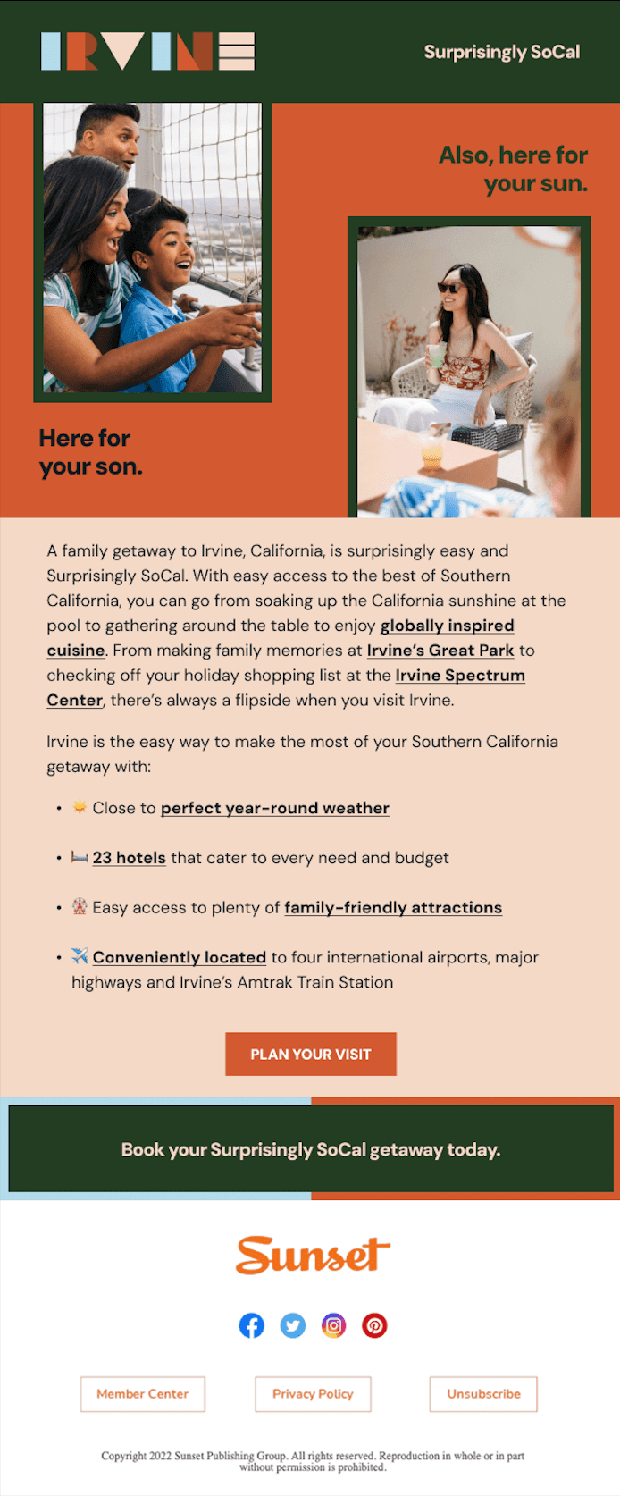 I wrote copy for Irvine's email campaigns, which targeted families to choose Irvine for a "Surprisingly SoCal" getaway.