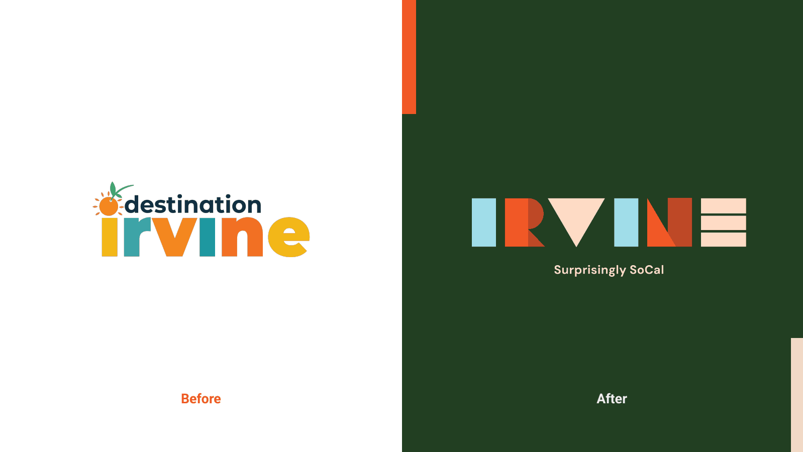 The logo redesign drew inspiration from a bird’s-eye view of the city, turning urban patterns into abstract shapes that formed a custom wordmark. The new, geometric logo uses a bright, bold color palette that feels modern and unlike other SoCal destinations.
